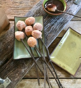 Plan fun and easy treats- this is one of my favorites- Purchase donut holes, warm the donut holes, spear with long sticks. Then dip donut holes i your favorite fudge or caramel sauce, which may purchased as well. A platter of varied fruits, pound cake chunks and the donut holes makes a festive fun treat for children of any age!