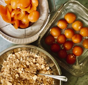 If you have one or two favorite casseroles or sides- double or triple the recipe and freeze or as in the case of Mimi’s Apricot Casserole– I double or triple the topping, seal in a freezer bag- set aside the other ingredients and foil baking pans so it’s ready to assemble and bake.
