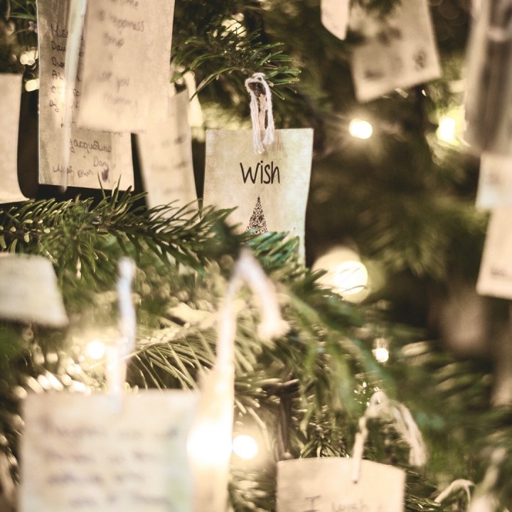 - Write your holiday wishes and tie them to the tree or better yet? Fulfill a few wishes!