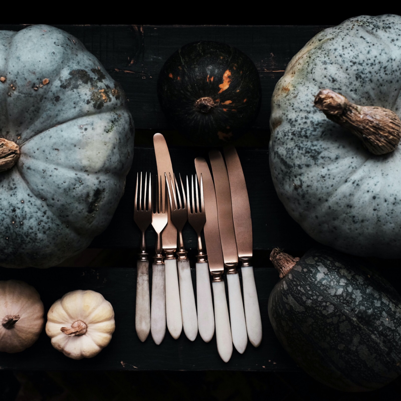 - Collaborate. Whatever goods you sell- team up with an opposite type of product or business. For instance, fresh pumpkins and amazing cutlery team up for a fabulous holiday table. Rustic pottery and naturals alongside fine wine and delicate goblets on a buffet outdoors. Imagine the possibilities for whatever you sell.
